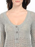 Детали: застежка на пуговицы, длинный прямой рукав и низ изделия декорированы ажурной вязкой