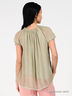 Детали: округлый вырез горловины на резинке, короткий рукав "фонарик", нижний край изделия украшен тесьмой