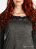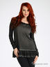 Стильная трикотажная туника с длинным рукавом и округлым вырезом горловины. Низ изделия слегка расклешен. Вырез украшен пришитой тесьмой с ворсистым кантом, низ оформлен пришитым воланом в складку.