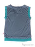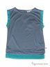 Симпатичная туника выполнена из тонкого трикотажа. Модель без рукавов и имеет округлый вырез горловины, внизу украшена складкой. Украшает изделие контрастная тесьма, которая обрамляет рукава и низ изделия. Сзади туника застегивается на пуговку, что облегчает надевания туники. Прекрасный выбор на каждый день.