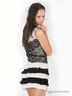 Туника из вискозы со вставками из гипюра. Нижняя часть туники - воланы из вискозы и сетки. Округлый вырез горловины. Без рукавов. Низ дополнен многослойными воланами.