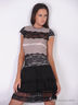 Приталенный силуэт с расклешенной юбкой. Короткий рукав. Неглубокий округлый вырез горловины. На спинке застежка на пуговицы. Юбка выполнена из двойной ткани.