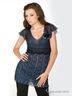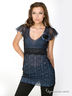 Нежное платье-туника из гипюра и кружева с декоративной брошью. U-образный вырез горловины. Короткие рукава-воланы.