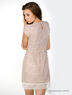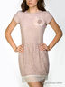 Благородное и нежное платье-туника из гипюра и кружева с декоративной брошью. Высокий круглый вырез горловины. Короткие рукава. Сзади застежка на пуговицу.