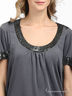 Детали: округлый вырез горловины и рукава декорированы пайетками, по бокам изделие присборено на резинки