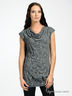 Туника из фактурного трикотажа. Круглый вырез-качели. Короткие рукава. Низ собран резинкой.