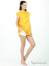 Удобная летняя туника. Воротник-декольте украшен пуговицами. Встречная складка спереди. Два накладных кармана на резинке сочетаются с маленькими рукавами той же формы. Туника будет прекрасно сочетаться с любыми леггинсами контрастного цвета.