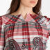 Стильная туника прямого кроя с длинными рукавами на манжете и воротником- лодочкой. Расцветка туники прекрасно сочетает модную клетку и этнический орнамент.
