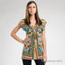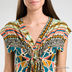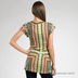 Тонкий мягкий трикотаж. Расклешенный силуэт. Короткий приспущенный рукав с широкой окантовкой. Глубокий V-образный вырез горловины с небольшим запахом у основания. Завышенная линия талии. На полочке декоративная вставка из резинки и эластичный шнурок, который можно завязать в бант.