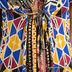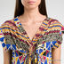 Платье женское синего цвета. Тонкий мягкий трикотаж. Расклешенный силуэт. Короткий приспущенный рукав с широкой окантовкой. Глубокий V-образный вырез горловины с небольшим запахом у основания. Завышенная линия талии. На полочке декоративная вставка из резинки и эластичный шнурок, который можно завязать в бант.