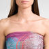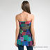 Туника из нежного эластичного материала с расклешенной юбкой. Без бретелек. Отрезной лиф, присобранный по боковым швам. Широкий пояс-резинка с металлической застежкой. Ассиметричный подол.