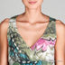 Яркая туника с запахом. V-образный вырез с декоративной отстрочкой. Ассиметричный низ придает тунике изюминку.