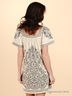 Детали: округлый вырез горловины присборен на ленту, короткий широкий рукав, полочка и спинка декорированы оригинальными рисунками