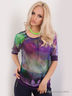 Очаровательный джемпер с рукавами 3/4 покроя "летучая мышь". Изделие с округлым вырезом горловины выполнено в яркой, контрастной расцветке. Отличный вариант для создания повседневного образа.