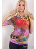 Очаровательный джемпер с рукавами 3/4 покроя "летучая мышь". Изделие с округлым вырезом горловины выполнено в яркой, контрастной расцветке. Отличный вариант для создания повседневного образа.