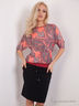 Очаровательный джемпер с рукавами 3/4 покроя "летучая мышь". Изделие с округлым вырезом горловины выполнено в яркой, контрастной расцветке. Отличный вариант для создания повседневного образа.