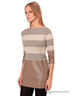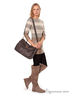 Женская шерстяная туника бежево-коричневого цвета, с высокой широкой горловиной. Низ изделия и манжеты выполнены из искусственной кожи