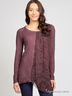 Туника с длинными рукавами и округлым вырезом горловины. Модель свободного кроя выполнена из качественного материала привлекательной расцветки. Спереди - вставка из полупрозрачного материала. Отличный вариант на каждый день.