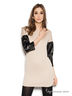 Модная новинка - кофта-туника "RENDOM" beige от компании CARDO презентована в коллекции "ВЕСНА 2015". Модель изготовлена из высококачественного структурного трикотажа INGEO. Молодежная туника выполнена в трендовом пастельном цвете "классический беж" свободного прямого силуэта. Модным элементом кроя становится заниженное плечо. Стильные укороченные рукава 3/4 из элегантного итальянского коз. зама. черного цвета - смело и молодежно! До середины рукава - металлические рабочие молнии, в ансамбле с ними идет такая же молния по спинке.
