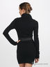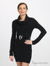 Вязанная туника прямого кроя. Ворот-хомут. Длинный рукав и низ изделия на трикотажной резинке в рубчик. Полочка декорирована ажурной вязкой "косичка". Туника дополнена эластичным поясом с лаковой пряжкой.
