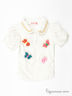 Стильная туника для девочки из мягкого хлопка. Отложной воротник. Короткие рукава с защипами. Спереди застежка на пуговицы. Полочка украшена объемными аппликациями.
