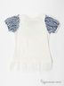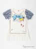 Модная туника для девочки из мягкого хлопка. Округлый вырез горловины. Короткие рукава. Полочка украшена стильным принтом, стразами, аппликациями и тесьмой. Низ модели дополнен кружевными и сетчатыми воланами.