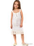 Нежная эффектная туника-платье на тонких бретелях из полупрозрачной гипюровой ткани с фигурной вышивкой выделки подола на хлопковом подкладке. Отличный вариант для создания неповторимого образа.