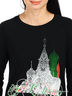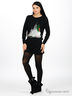Детали: круглый вырез; длинный рукав с манжетой; на полочке аппликация