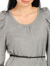 Детали: круглый вырез; длинный рукав оригинального кроя; манжеты и низ изделия дополнены трикотажной резинкой
