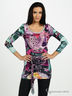 Стильная туника прямого кроя из струящейся шелковистой ткани подойдет обладательницам оригинального вкуса. Округлый вырез горловины дополнен трикотажной лентой. Длинный прямой рукав. На талии шлевки с плетеным поясом.