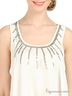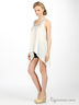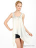 Детали: круглый вырез, без рукавов, полочка украшена рифлеными серебристыми пайетками, ассиметричный крой