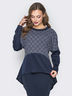 Кофта свободного кроя со спущенной линией плечевого шва и удлиненной спинкой. Полочка декорирована контрастным узором.
