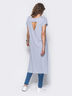 Стильная туника с коротким рукавом, с необработанными краями. На спинке фигурный вырез. По бокам изделие дополнено разрезами. Застежек не предусмотрено.
