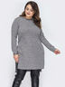 Туника из трикотажа меланжевой расцветки в тонкую полосу. Модель с удлиненной спинкой и разрезами по бокам.