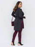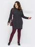 Туника из трикотажа меланжевой расцветки в тонкую полосу. Модель с удлиненной спинкой и разрезами по бокам.