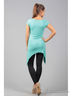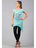 Детали: туника с коротким узким рукавом, удлиненные концы туники по бокам, вырез горловины лодочка, с лицевой стороны изделия модный принт.