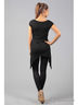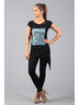 Детали: туника с коротким узким рукавом, удлиненные концы туники по бокам, вырез горловины лодочка, с лицевой стороны изделия модный принт.