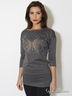 Туника с аппликацией. Модель с рукавами 3/4 и фигурным вырезом горловины, выполнена из плотного трикотажа. Отличная посадка для любого типа фигуры.