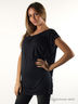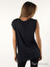 Трикотажная туника свободного кроя с ассиметричными рукавами. Модель декорирована аппликацией из гипюра, бисера и страз в виде погона на одном плече.