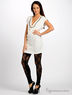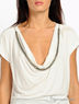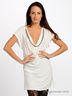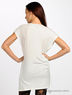 Однотонная туника с круглым глубоким вырезом в легкую сборку. Изделие украшено металлическими элементами декорированными стразами.