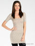 Трикотажная туника свободного кроя с круглым вырезом, рукава 3/4, короткие рукава, оригинальный принт.