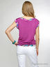 Трикотажный топ. Круглый вырез. Цельнокроеный рукав. По краям изделия цветная отделка в складку.
