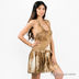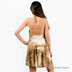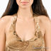 Пляжное платье с оригинальным принтом и завязками на шее. Тонкий пояс продет в шлевки и украшен пластиковой пряжкой.