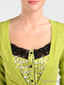 Детали: эффект двойки. Полочка декорирован кружевом, застежка на пуговицы, длинный прямой рукав