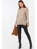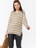 Особенности: Туника в контрастную мелкую полоску силуэта "oversize" выполнена из смесовой пряжи и резинкой по низу. Втачные прямые рукава на резинке, разрезы в боковых швах, асимметричный низ.