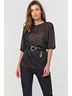 • Особенности: Туника из фактурного ажурного трикотажа с люрексом. Детали: горловина обработана окантовкой, рукав до локтя, по спинке - V-образный вырез и бейка.