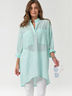 Особенности: Туника свободного силуэта из легкой хлопковой ткани. Детали: Воротник-стойка с планкой, накладные карманы, длинный рукав, асимметричный низ.