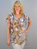 Детали: v-образный вырез горловины, короткий рукав, фигурный крой низа изделия