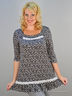 Детали: округлый вырез горловины декорирован тесьмой, укороченный прямой рукав, низ изделия декорирован оборкой и кружевной тесьмой