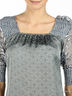 Детали: вырез каре, короткие полупрозрачные рукава, сзади застегивается на молнию